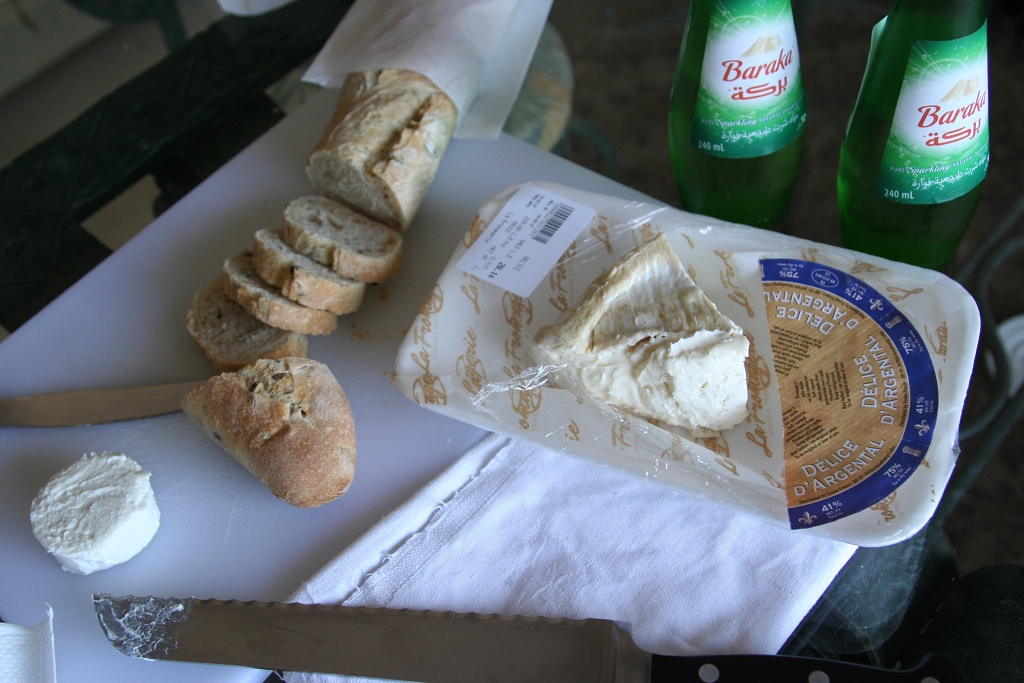 We also had to pick up a snack for a day of studying and grading… olive baguette with fresh goat cheese and delice d’argental (a cheese described to us as sheep’s milk cheese which the label clearly says is cow’s milk… but who cares, it was delicious!).